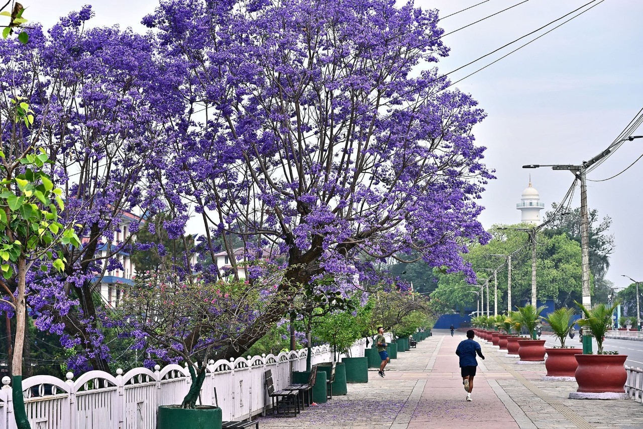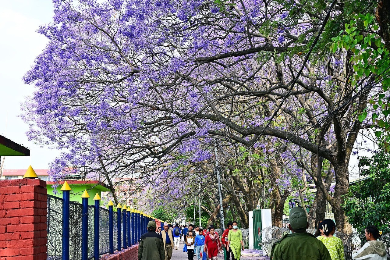 As late spring unfolds into early summer, the Kathmandu Valley is transformed by the enchanting bloom of jacaranda trees. These trees, with their delicate purple flowers, paint the cityscape in vibrant hues, creating a breathtaking visual experience for both locals and tourists.